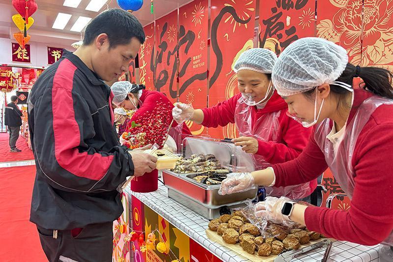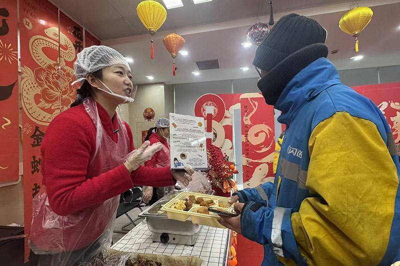 “我刚接结束中午的送餐,第一时间就来这了!”外卖“小哥”任泽智一边挑选自己喜爱的美食一边说:“逢年过节大家都爱往时代风帆赶,每次都有好事儿等着我们!”90后“小哥”包永森来自四川,去年9月份来到北京,“本来对北京不太熟悉,今天一下子品尝到这么多地道的北京美食,非常开心,在北京马家堡也有了家的感觉。”