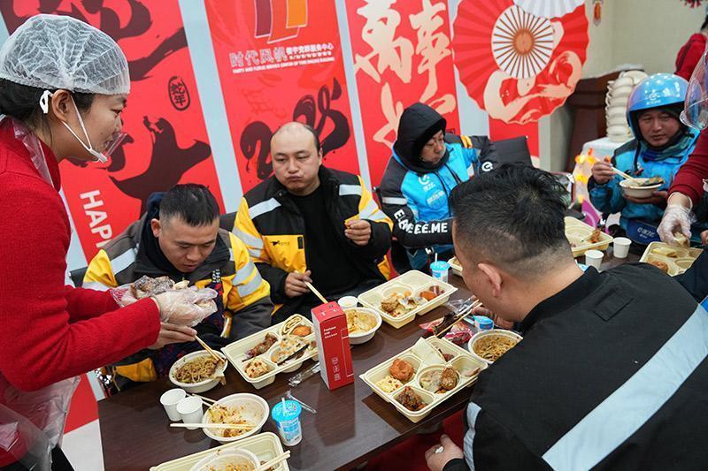 “这已经是我们连续第三年为外卖小哥举办专场庙会了,陪伴他们欢度佳节已成为一项传统。今年我们邀请紫光园、稻香村、吴裕泰、鸦儿李记、聚宝源等独具特色的‘北京味道’为‘小哥’们献上京味儿大餐,希望大家能感受到北京的美食与温暖。”时代风帆楼宇党委书记李冉说。